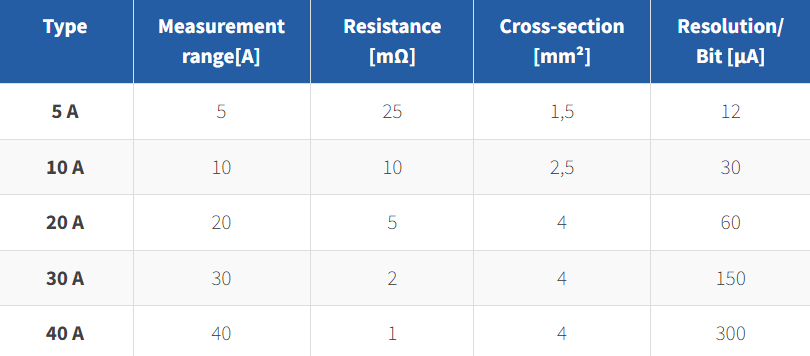 각 경우에 가장 작은 측정 범위로 표시됨 우리의 측정 모듈인 MULTI 8, MULTI 4 및 KLARI-CORD 5에 유효함