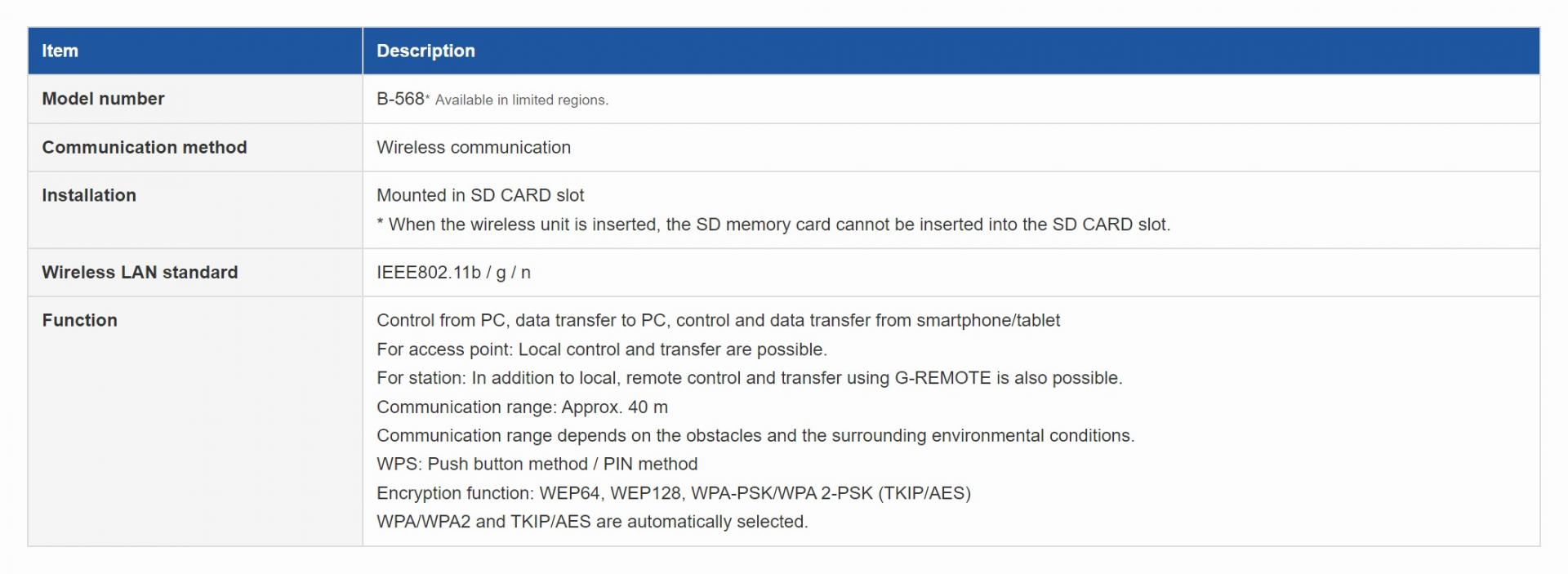 *무선 LAN 연결에는 옵션 B-568이 필요합니다. USB 연결은 일반적인 A-B 타입 케이블입니다.