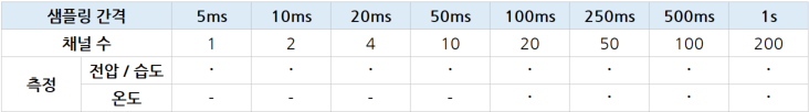 5ms: 1채널, 10ms: 2채널, 20ms: 4채널, 50ms: 10ch