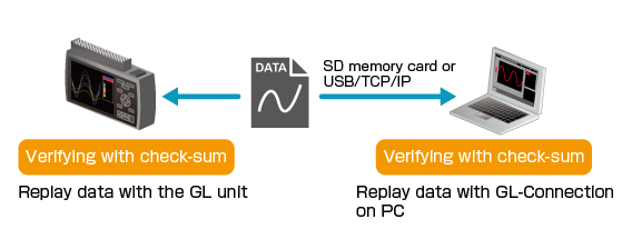 데이터 파일 재생 시 데이터 파일의 무결성을 확인하는 기능입니다. 데이터 파일에서 생성된 체크섬과 기록된 체크섬을 비교합니다. 두 체크섬이 일치하지 않으면 데이터 파일이 손상되었거나 누군가에 의해 변경되었을 수 있습니다. 체크섬 코드는 GL 장치에서 데이터 파일을 생성할 때 파일에 기록됩니다.