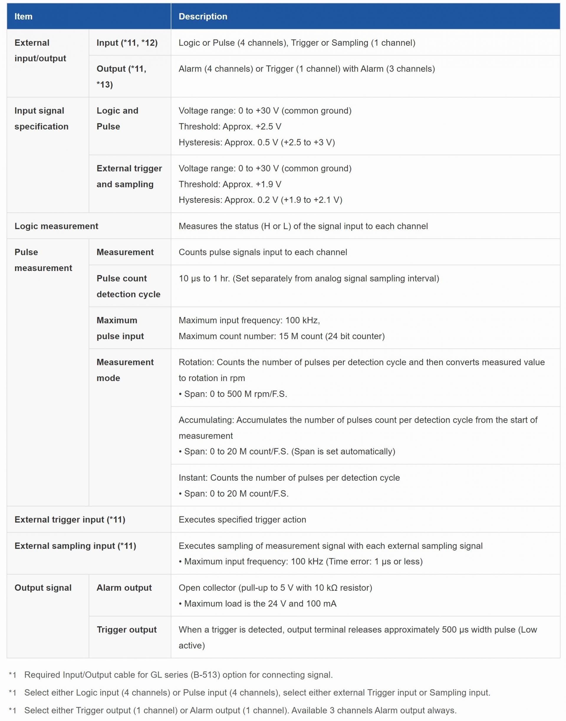 로거의 샘플링은 외부 신호 입력을 사용하여 외부 장치와 동기화하여 수행됩니다.
