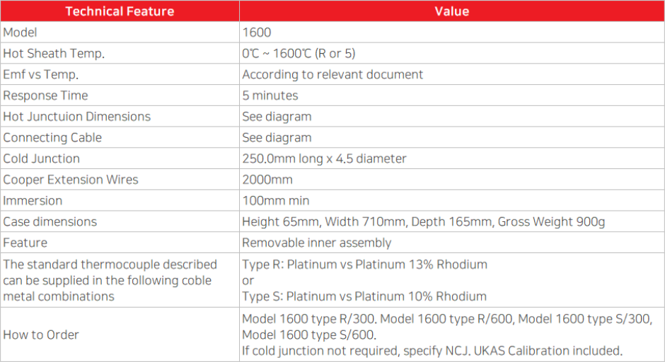 1600 / Platinum Rhodium / Thermocouple Standard Platinum